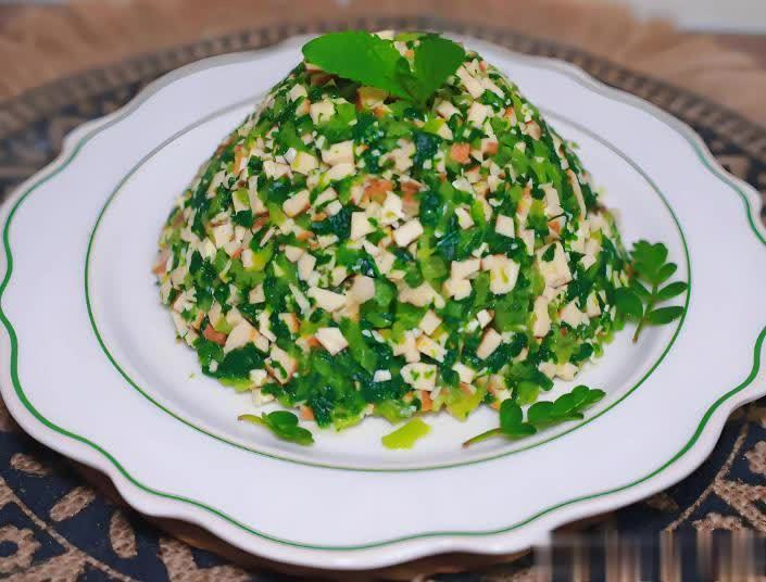 2. 焯水:锅中烧开水,加入适量盐,将马兰头放入沸水中焯水,焯水时间约为1-2分钟,待马兰头变色后迅速捞出,用冷水冲凉,沥干水分。