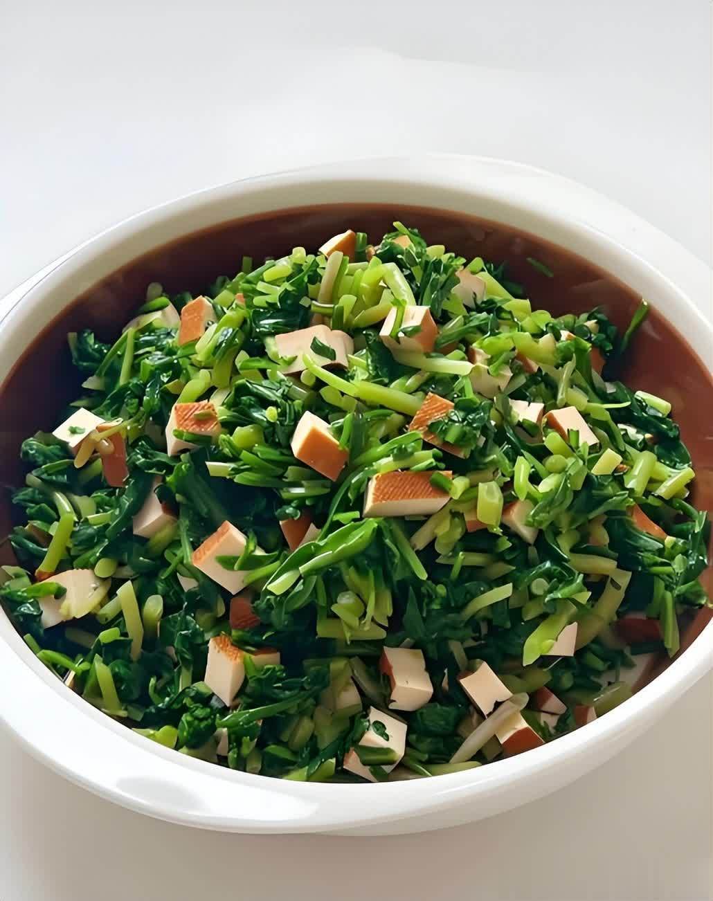 7. 翻炒均匀:继续翻炒1-2分钟,确保腊肉与观音菜完全混合均匀,入味后即可出锅,装盘。